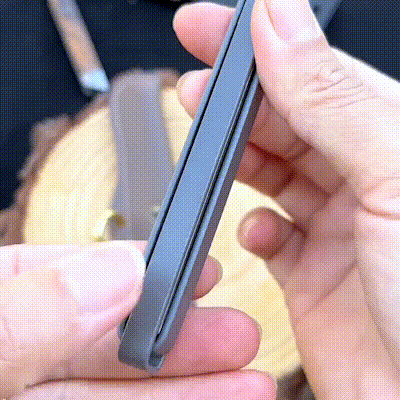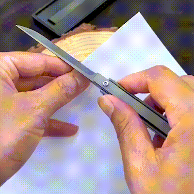 - Hojas afiladas M390: El diseño delgado facilita su transporte, y su hoja ultrafina de alto rendimiento en acero M390 permite realizar una amplia variedad de tareas de corte con facilidad..