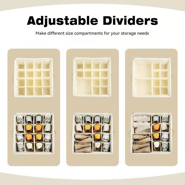 RESISTENTE Y DURADERO:El zapatero está fabricado con materiales de alta calidad y diseñado para ser duradero. El marco y la base están hechos de cartón grueso y tela Oxford de alta densidad, mientras que los divisores están hechos de paneles de núcleo hueco y tela no tejida, proporcionándole una solución de almacenamiento fiable.