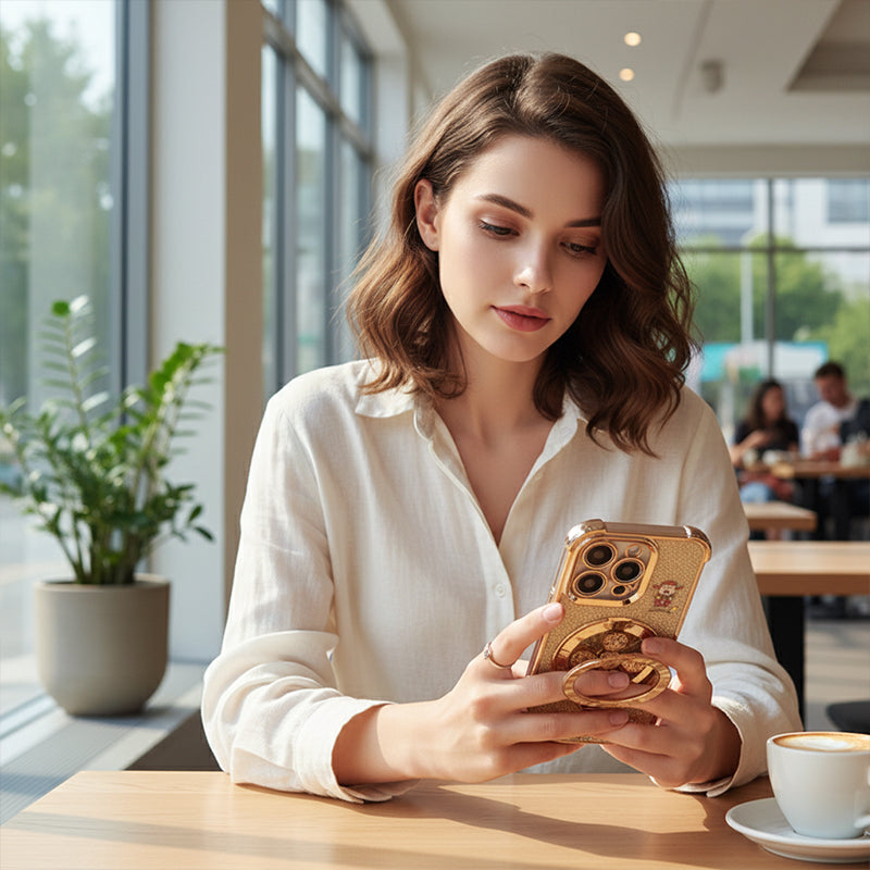 DISEÑO ELECTROPLACADO DE LUJO: Destaca con un acabado brillante y galvanizado que presenta símbolos tradicionales de la fortuna. Este diseño único no solo ofrece un aspecto lujoso, sino que también aporta prosperidad y buena suerte a tu dispositivo.