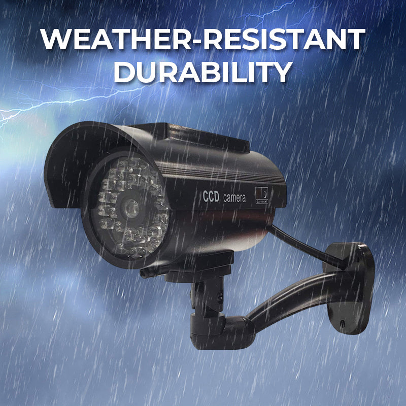 DURABILIDAD RESISTENTE A LAS INCLEMAS DEL TIEMPO – Fabricada con plástico ABS resistente a los rayos UV y con una clasificación de impermeabilidad IP65, esta cámara ficticia soporta lluvia, nieve y temperaturas extremas. Los materiales resistentes a la corrosión garantizan un uso exterior a largo plazo sin desvanecerse ni dañarse.