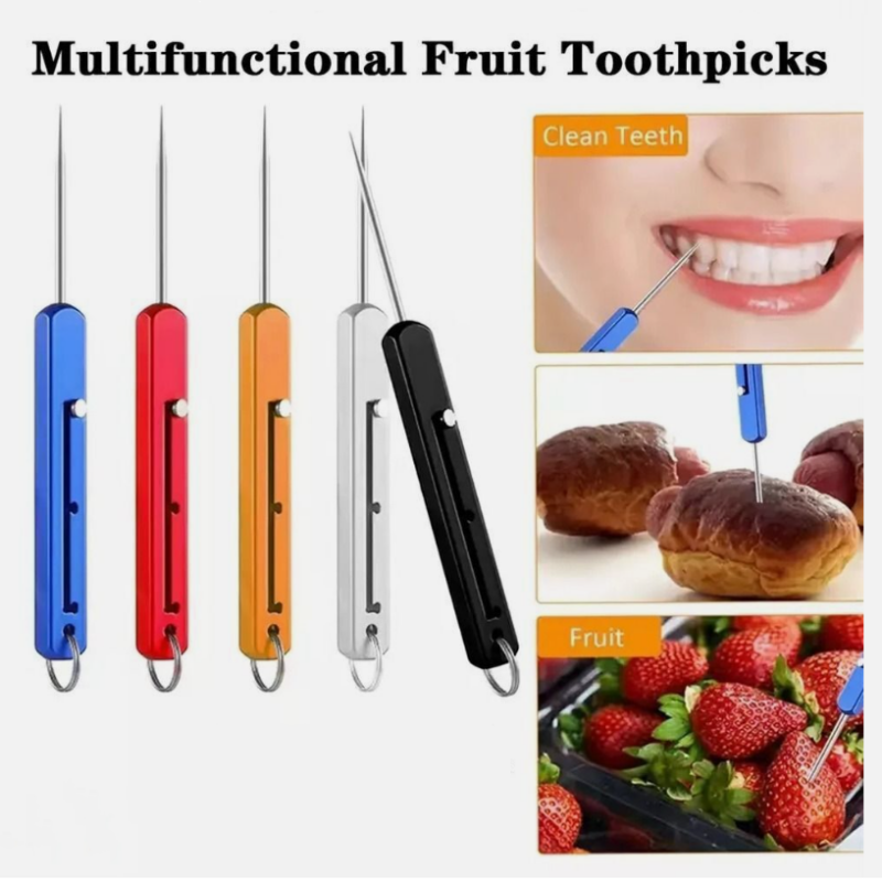 FUNCIONALIDAD MULTIPROPÓSITO: Además de su función principal como palillo de dientes, esta herramienta también sirve como tenedor de fruta para recoger trozos de fruta sin esfuerzo, y puede usarse en casa, en la oficina, al salir a comer o durante un viaje.
